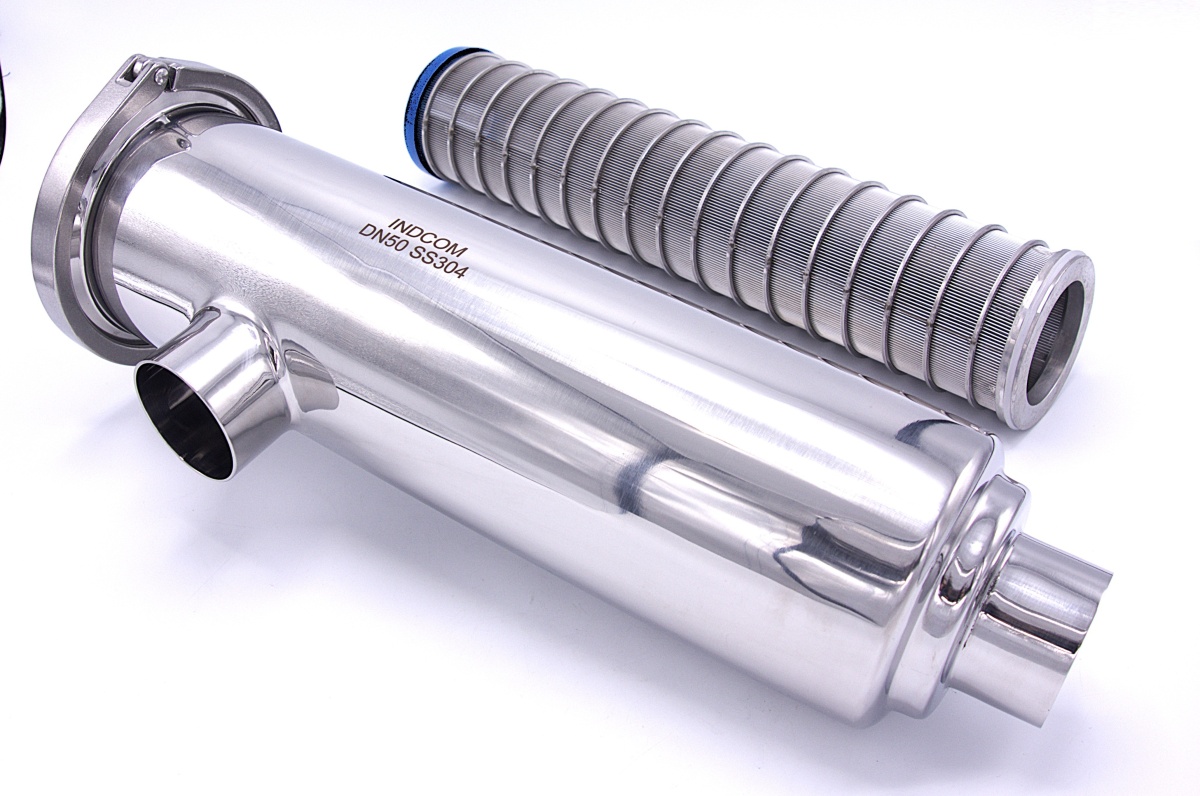 Trubkový filtr rohový vstup/výstup DN50. Připojení lze upravit dle přání zákazníka -DIN/SMS a jiné.
