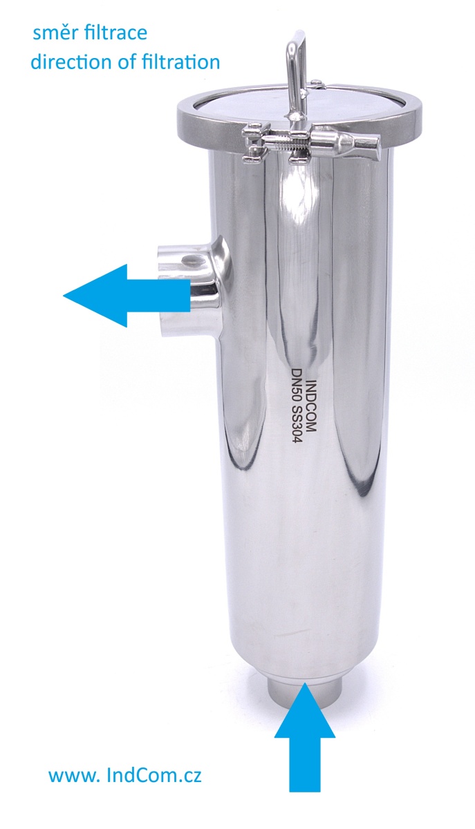 Trubkový filtr rohový vstup/výstup DN50. Připojení lze upravit dle přání zákazníka -DIN/SMS a jiné.