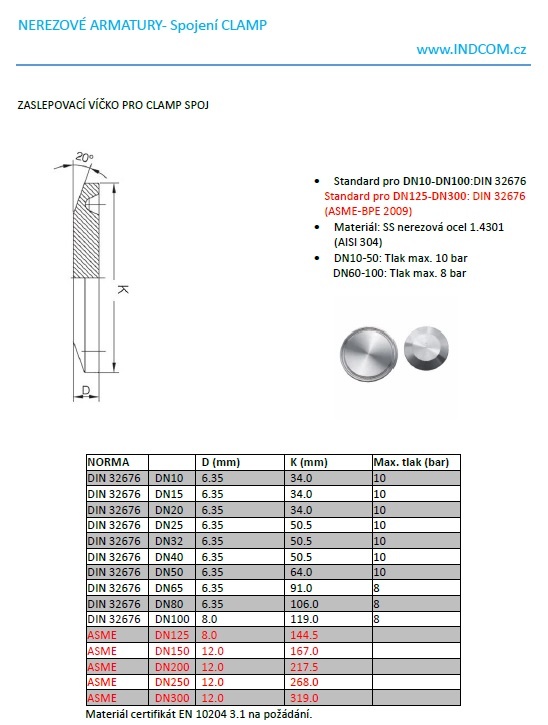 • Materiál: SS nerezová ocel 1.4301 (AISI 304)